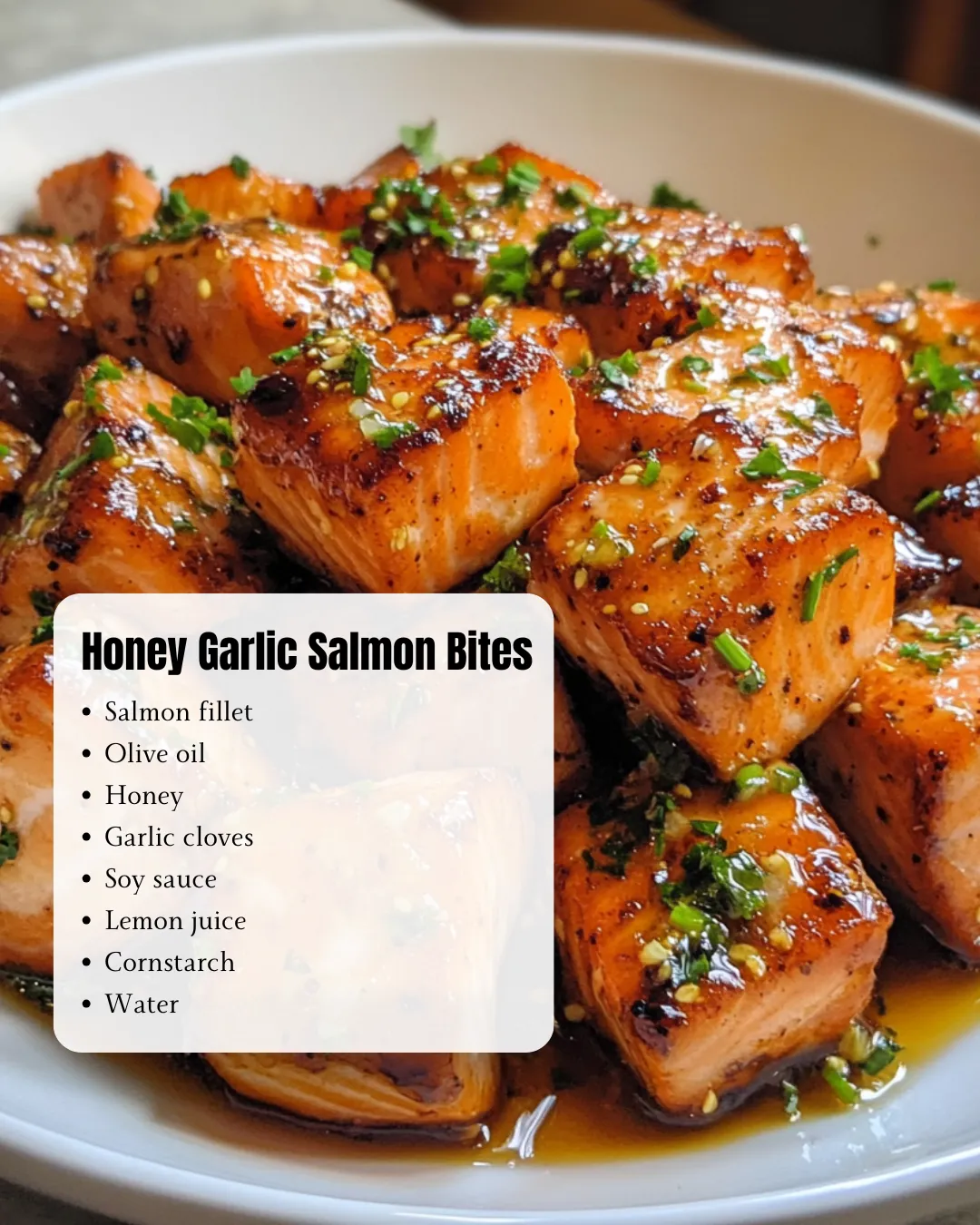 Return the salmon bites to the skillet and gently toss them in the honey garlic glaze until fully coated. Let them warm through for about 1-2 minutes. - Serve: