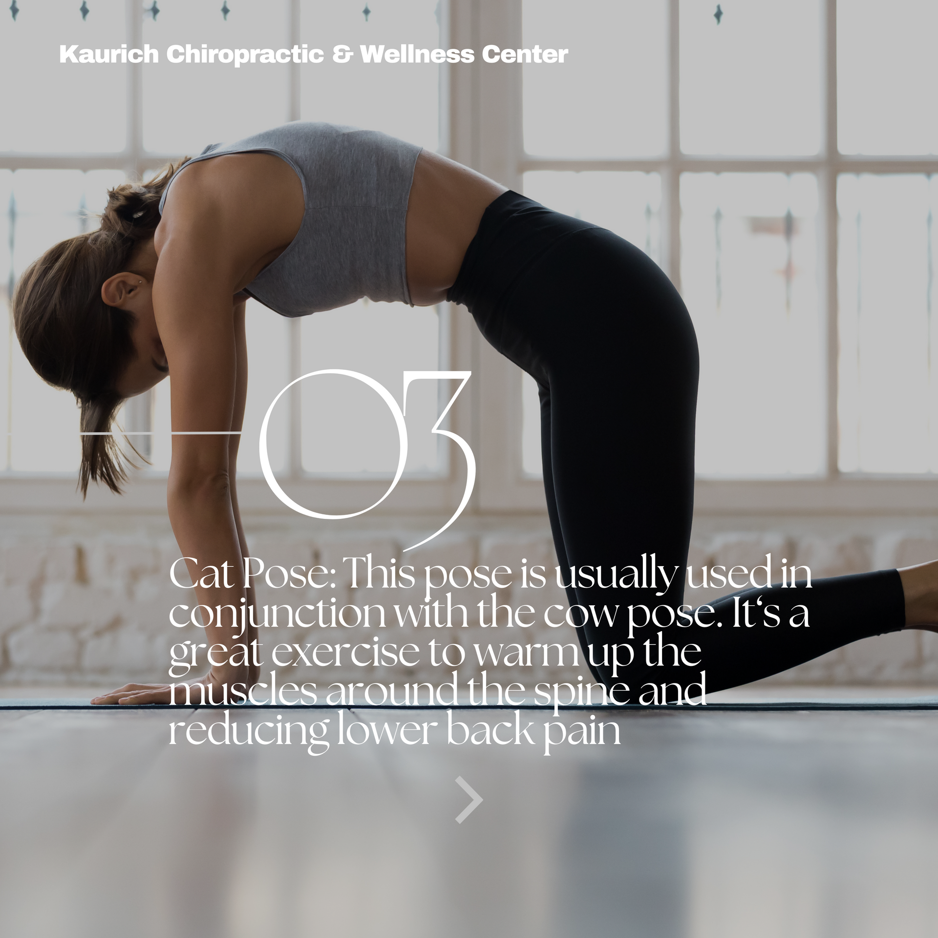 Cat-Cow Stretch: On your hands and knees, alternate between arching your back (like a scared cat) and dipping it down (like a cow). This helps with flexibility and reduces tension.